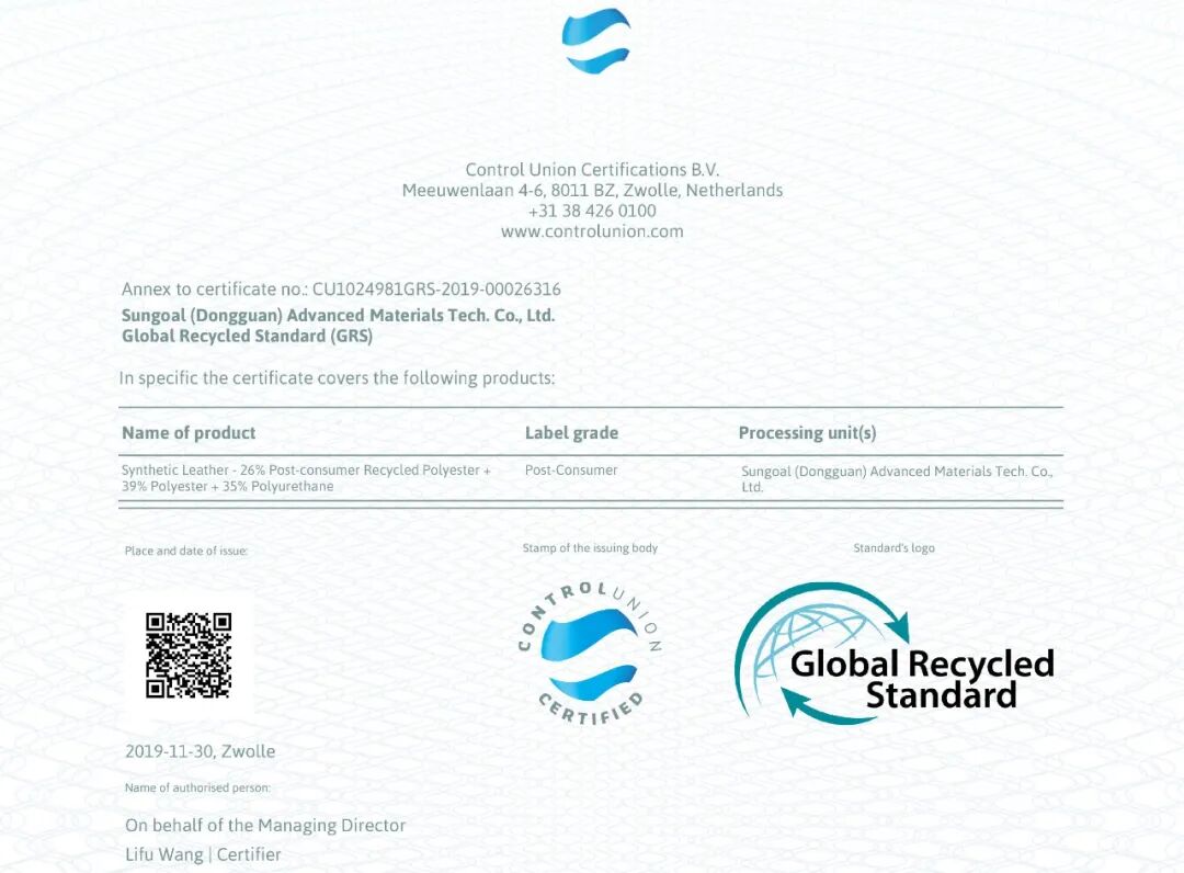 如果您需要找回收材料,可选择找“盛国”已取得了GRS证书!